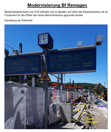- Neuverlegung der Bahnhoffernmeldekabel.
