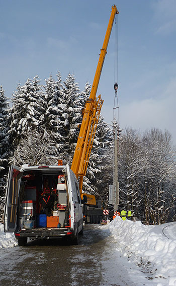 Für den flächendeckenden Gebrauch von GSM-R Mobilfunk muss die Infrastruktur weiter ausgebaut werden. Hierfür werden Basisstationen (BTS),